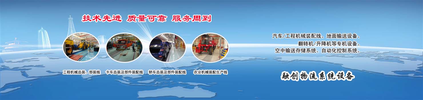 無錫市融創(chuàng)物流系統(tǒng)設(shè)備有限公司專業(yè)從事物流輸送設(shè)備、各類裝配流水線設(shè)備、各類生產(chǎn)非標(biāo)專機(jī)設(shè)備和自動化控制系統(tǒng)的專業(yè)生產(chǎn)企業(yè)。廣泛應(yīng)用于轎車、卡車、客車、各類工程機(jī)械、發(fā)動機(jī)、車橋、農(nóng)業(yè)機(jī)械、郵政、家電等行業(yè) ...... >> more >>